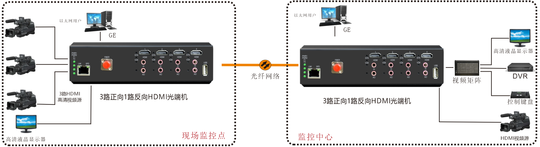 | 產(chǎn)品功能描述 | 在光纖上同時傳送4路2K HDMI 信號 + 1路千兆以太網(wǎng)+1路USB1.1 |