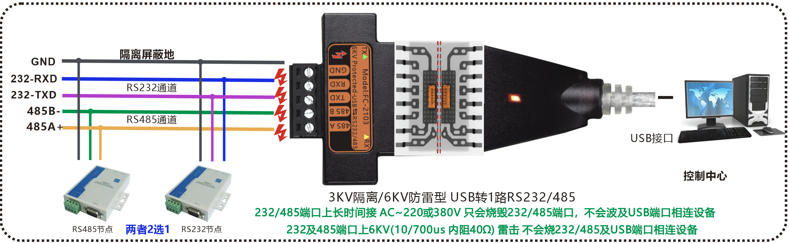 | 產(chǎn)品功能描述 | 防雷隔離型USB轉(zhuǎn)1路S232/485轉(zhuǎn)換器,帶USB線 | |||