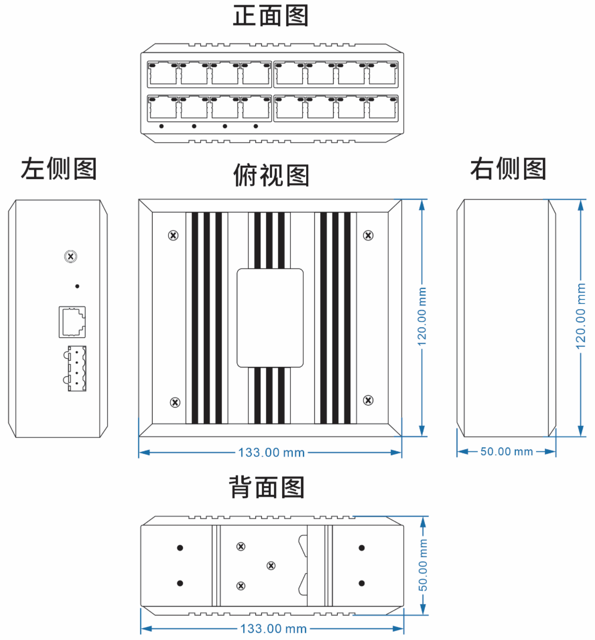 | 電氣和機械特性 | 外觀結(jié)構: 133mm(長) x 120mm(寬) x 50.0mm(高) |