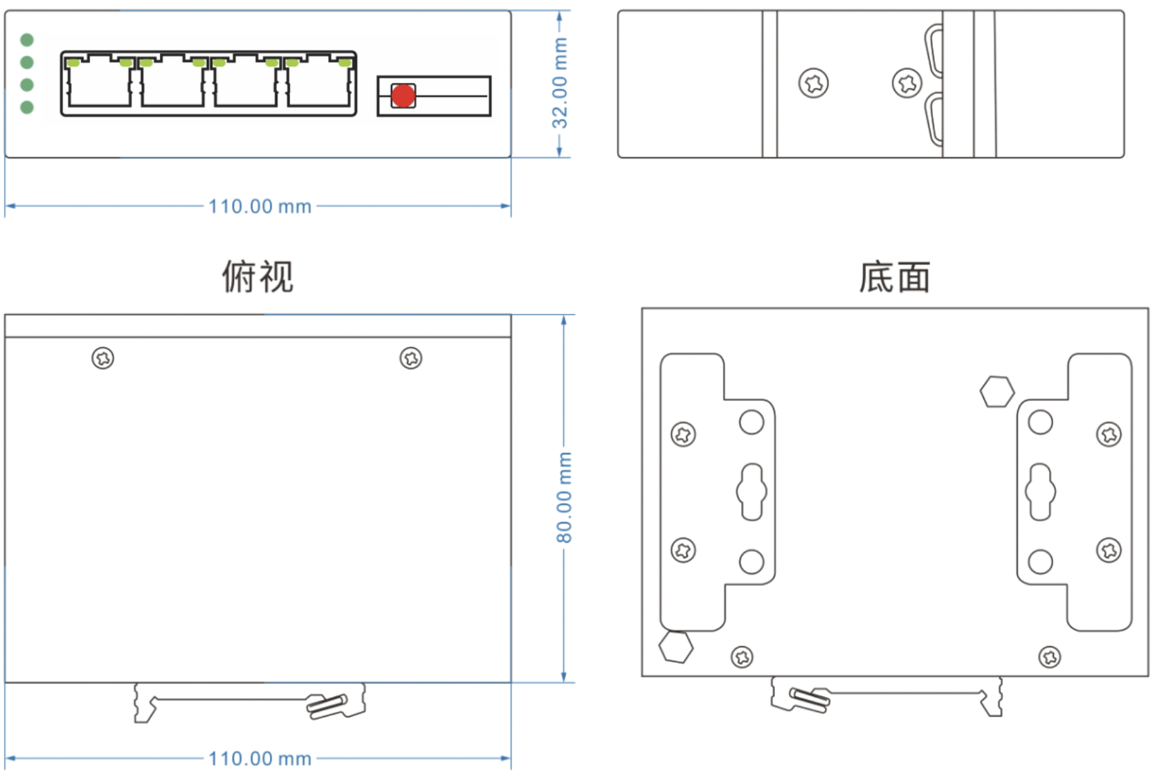 外殼:IP40防護(hù)等級,鋼材質(zhì) 尺寸:110mm(長) x 80mm(寬) x 32mm(高) 安裝方式:導(dǎo)軌安裝、壁掛式安裝 |